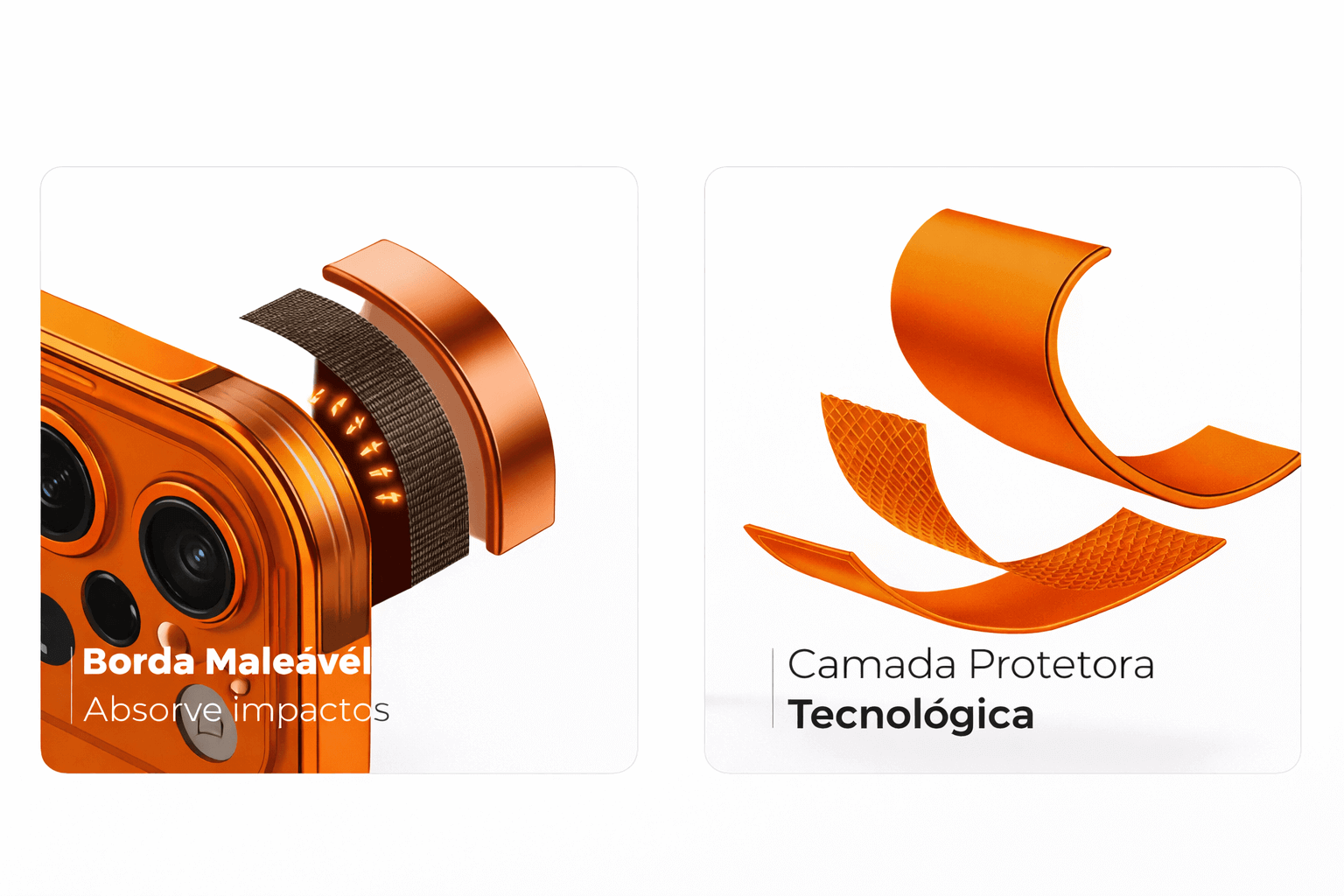 Projetada sob medida para um encaixe perfeito, cada detalhe foi pensado para entregar máxima proteção sem abrir mão da elegância original do aparelho.