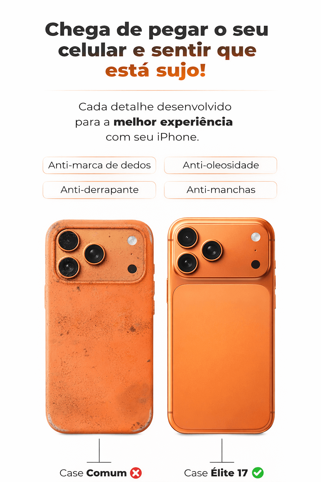 Inspirada na nova geração iPhone 17, a Pro Élite 17 foi desenvolvida com design exclusivo baseado na estética mais moderna da Apple.